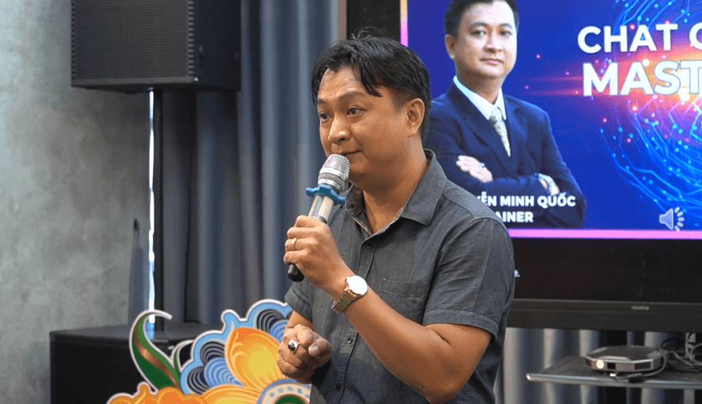 Theo đó, thầy Nguyễn Minh Quốc xây dựng chương trình đào tạo dành riêng cho doanh nhân. Học viên được học theo hình thức thực chiến, kết hợp giữa lý thuyết và thực hành ngay trên chính tài khoản Chat GPT được cấp.